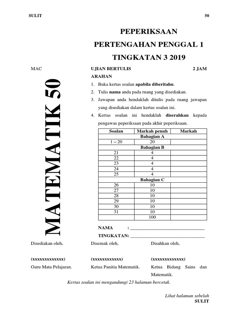 Soalan Ujian Matematik Tingkatan 3 Kssm Pdf